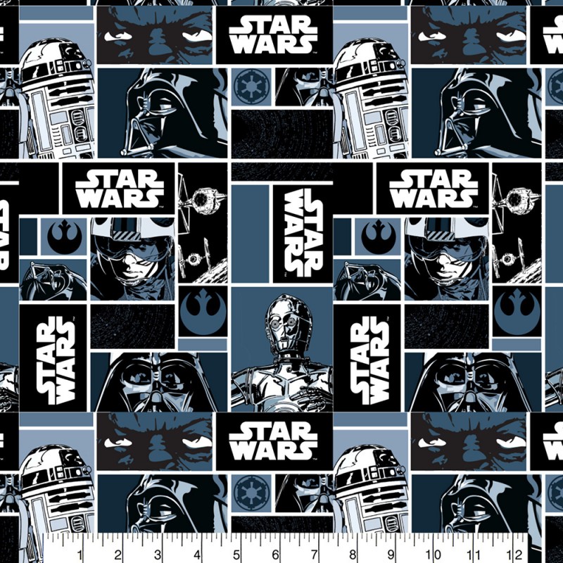 Printed Fabric Star Wars Classic Blocks R2D2 C3PO Yoda