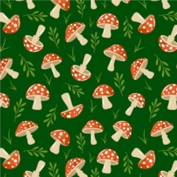 Bring a touch of woodland charm to your sewing projects with this 100% cotton Winceyette fabric from R.E.D Textiles. Printed with a repeating pattern of stylised mushrooms and leafy sprigs, the design features mushrooms in varying orientations across the fabric, giving it a lively, nature-inspired character.