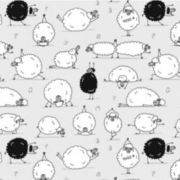 This 100% cotton printed Winceyette fabric from R.E.D Textiles features a playful design of cartoon sheep in a variety of yoga poses, with phrases and symbols scattered throughout.