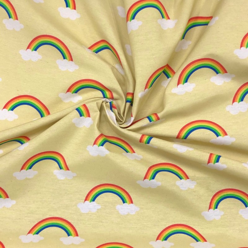 Cotton Rich Panama Fabric Rainbows Clouds Curtain Upholstery Cushion