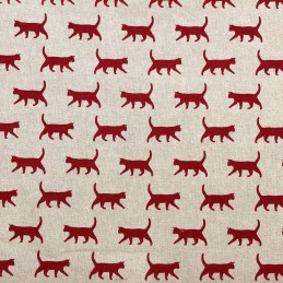 Cotton Rich Linen Look Fabric Walking Cats Upholstery Kittens