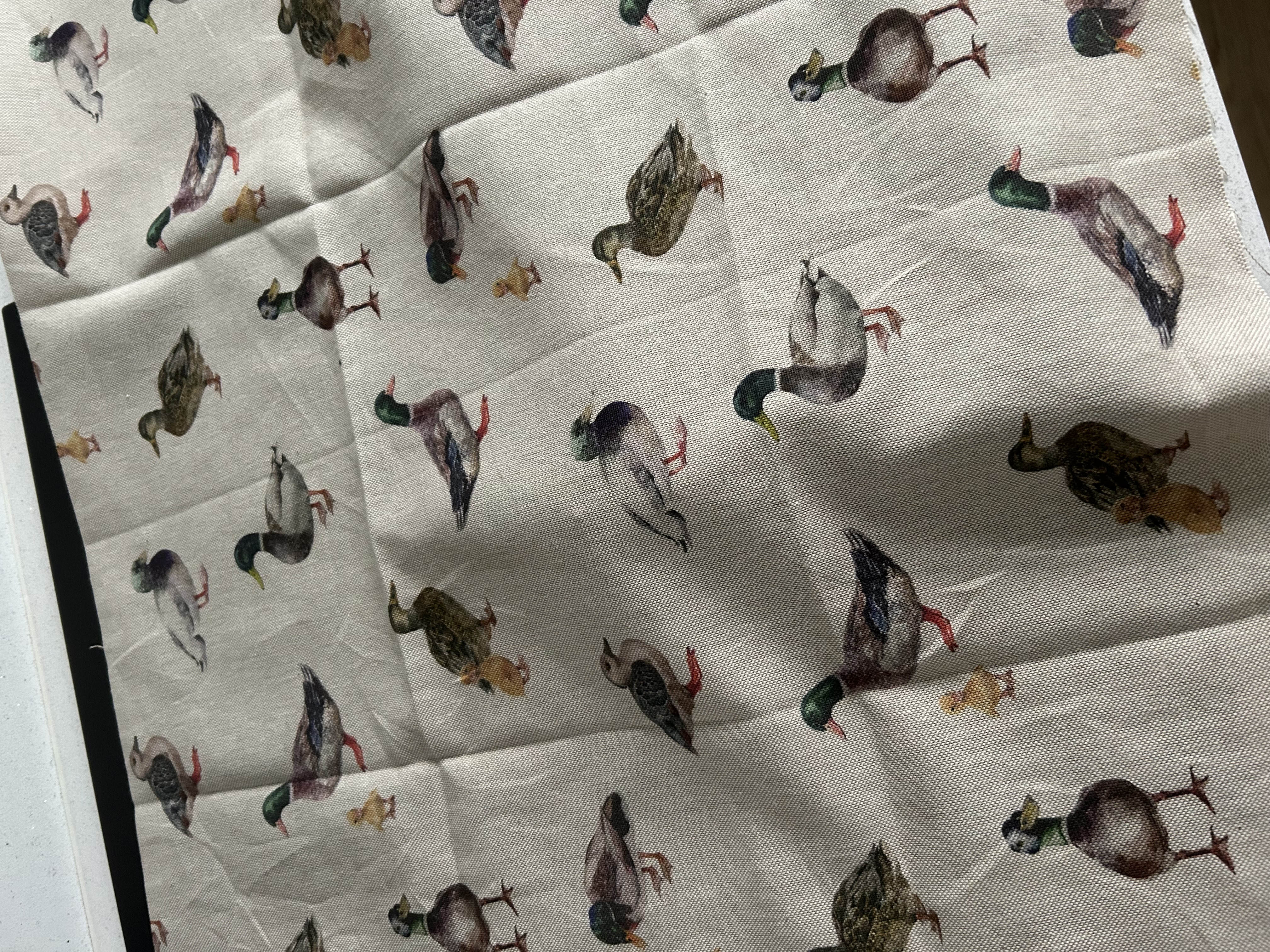 This review has been posted for Cotton Rich Linen Look Fabric Digital Mallard Ducks Upholstery