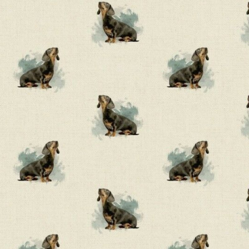 Cotton Rich Linen Look Fabric Dachshund Dog Or Panel Upholstery