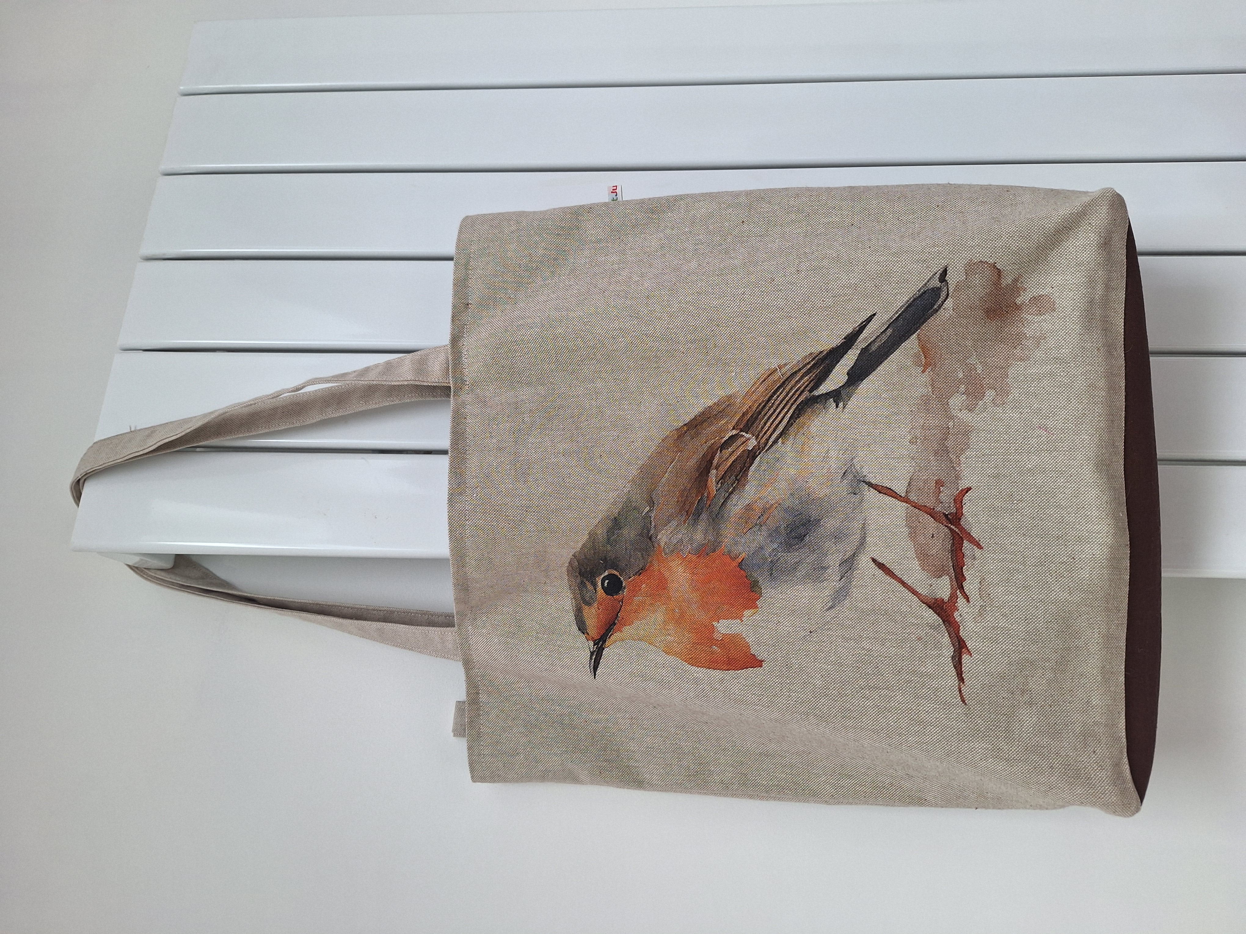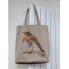Cotton Rich Linen Look Fabric Digital Watercolour Robin Bird Animal 140cm Wide