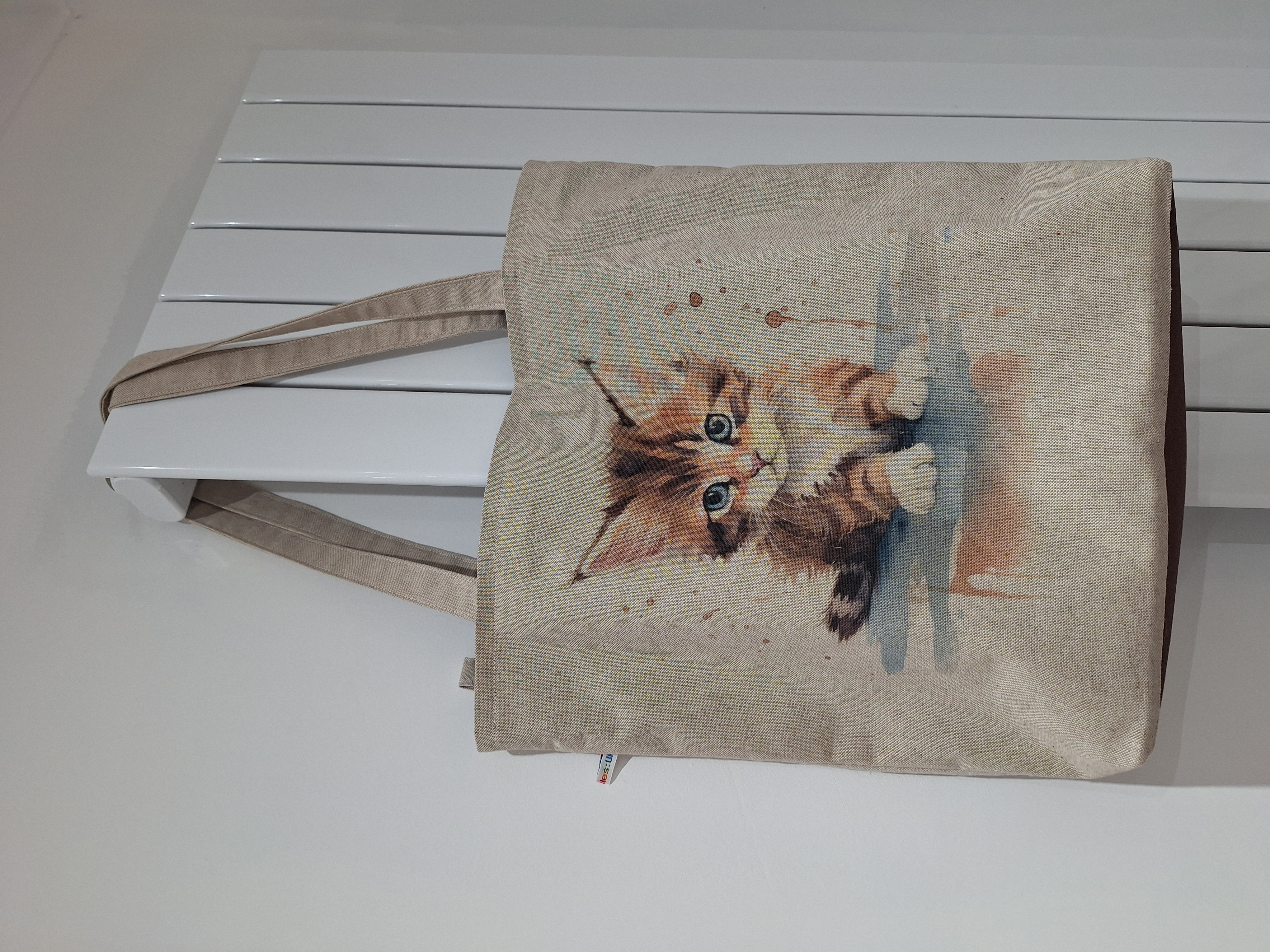 Cotton Rich Linen Look Fabric Digital Puddle Kittens Kitten Cat Cats 140cm Wide