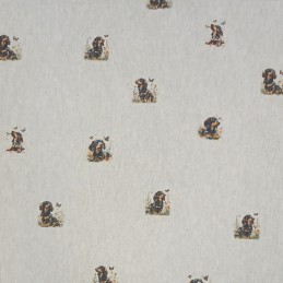 Cotton Rich Linen Look Fabric Digital Dachshund Dog Allover 140cm Wide