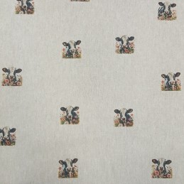 Cotton Rich Linen Look Fabric Digital Easter Bunny Rabbits Floral Allover 140cm Wide