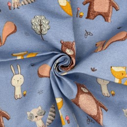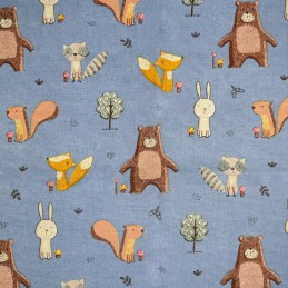 Crafty Canvas Cotton Rich Half Panama Fabric Forest Friends Bear Fox 140cm Wide