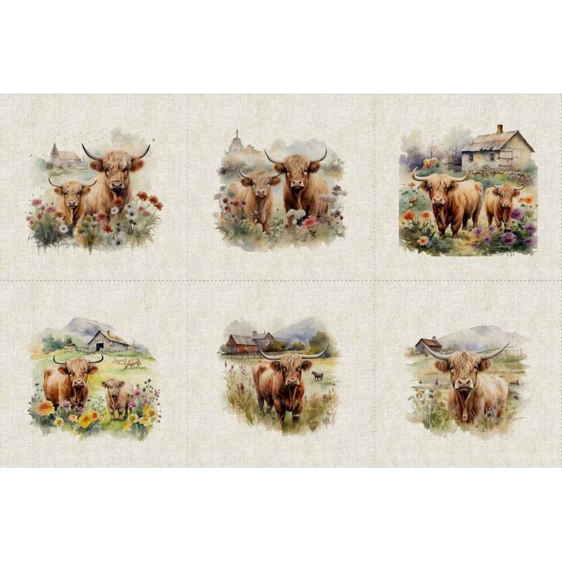 Transform your home with these stunning Highland Cow Farm Cushion Panels, exclusive to Oh Sew Crafty! Featuring six unique countryside scenes, each panel showcases majestic Highland cows set against picturesque farm landscapes. Printed on high-quality Cotton Linen Look Fabric, these cushion panels are ideal for cushion covers, curtains, blinds, and upholstery.