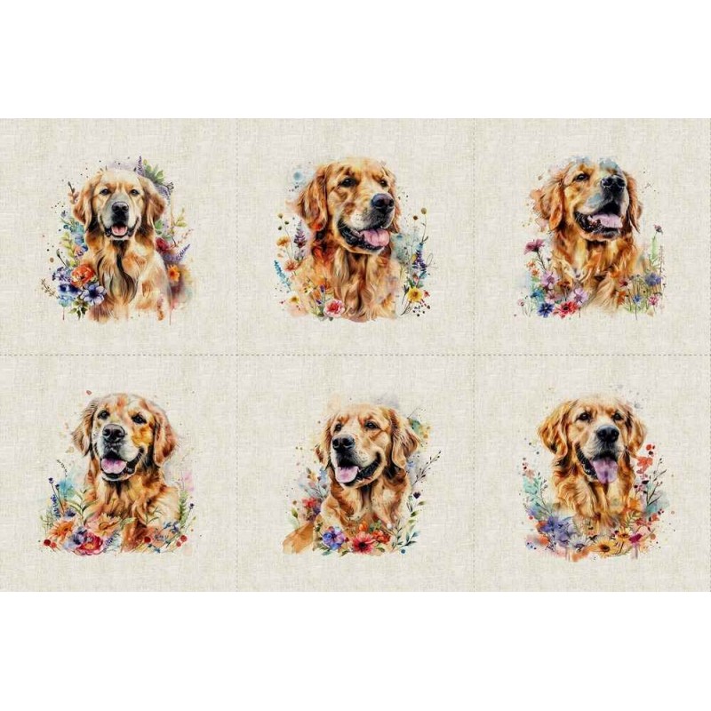 Create heartwarming home décor with these beautiful Golden Retriever Cushion Panels, exclusively available at Oh Sew Crafty. Featuring six charming portraits of Golden Retrievers framed by delicate floral details, these cushion panels are printed on our luxurious Cotton Linen Look Fabric. Ideal for crafting elegant cushions, curtains, blinds, upholstery, and more.