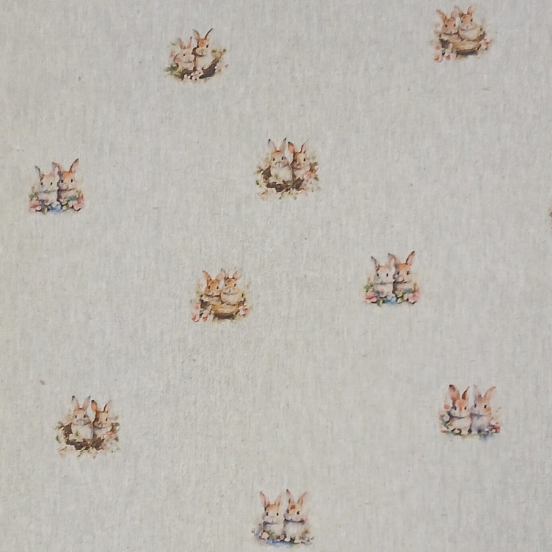 Each bunny print measures approximately 5cm x 5cm, adding just the right amount of cuteness to your handmade projects. The soft yet structured 80% cotton and 20% polyester blend has a lovely linen-look texture, ideal for adding a rustic, handmade feel to your décor and gifts.