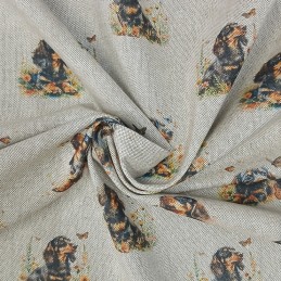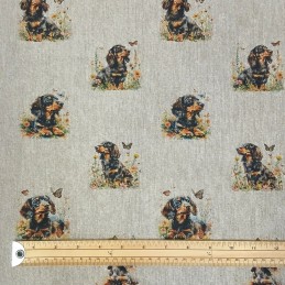 Cotton Rich Linen Look Fabric Digital Dachshund Dog Allover 140cm Wide