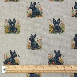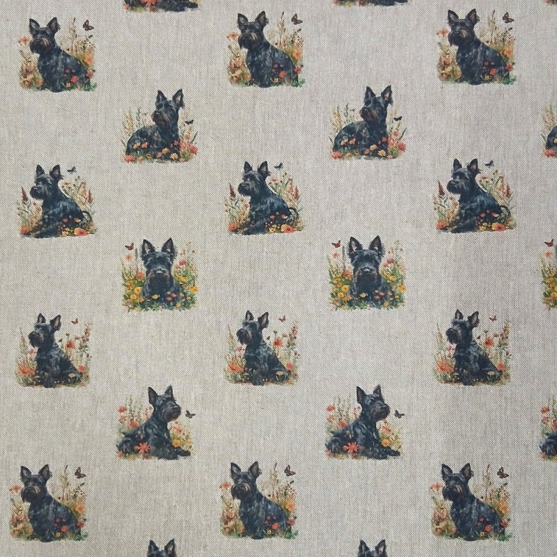 ✔ Lovable Scottie dog illustrations 🐶 ✔ Linen-look texture with cotton-rich softness ✔ Motif size approx. 6cm x 6cm ✔ Perfect for cushions, bags, pet accessories, and more ✔ Available in convenient cut lengths