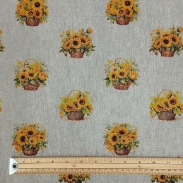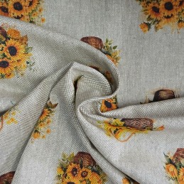 Cotton Rich Linen Look Sunflower Print (80% Cotton, 20% Polyester)