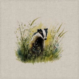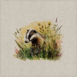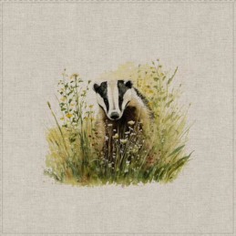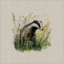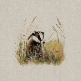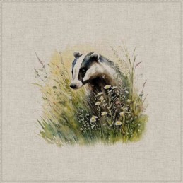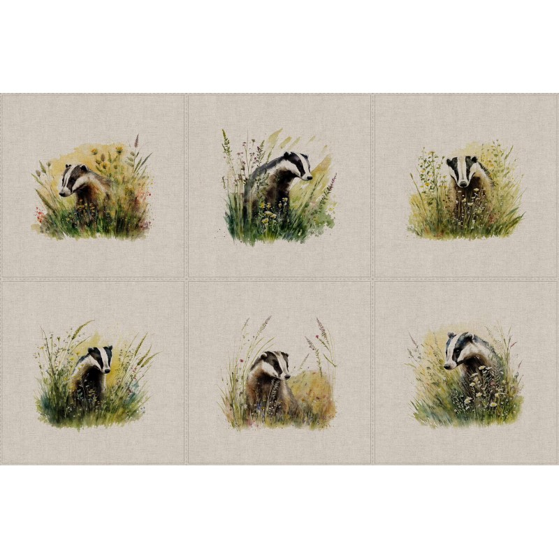 Cotton Rich Linen Look Fabric Digital Botanical Badgers Animals 140cm Wide