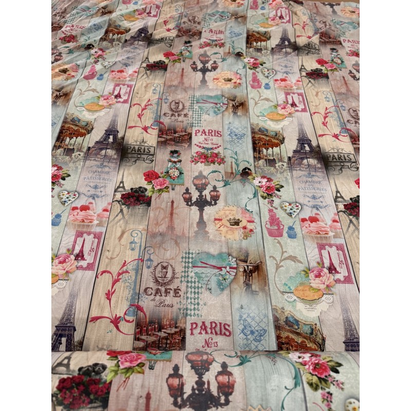SALE Cotton Half Panama Digital Fabric Vintage Paris Upholstery