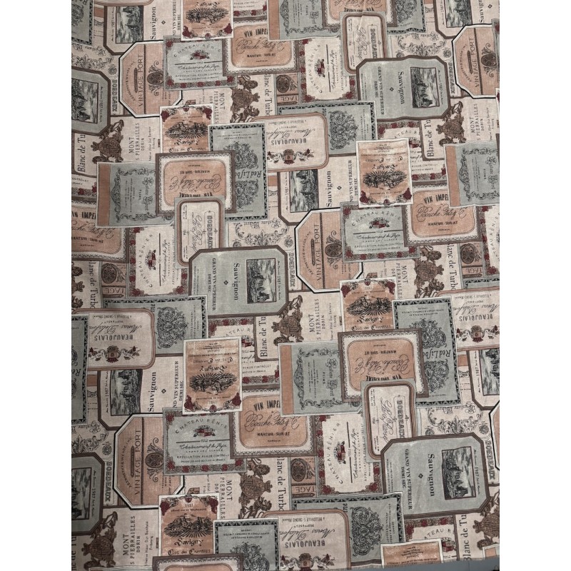 SALE Cotton Canvas Fabric Wine Labels 140cm Wide