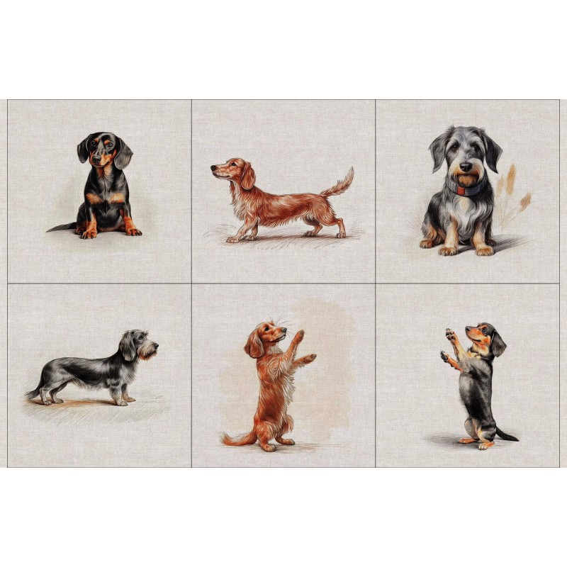 This fabric is designed so each Dachshund panel can be used as a feature element. Cut out individual panels for cushions, tote bags or framed textile artwork.