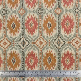 Create a bold and contemporary look with this Istanbul Geometric Cotton Rich Linen Look Fabric from the Digital Crafty Linens collection. Featuring an eye-catching ikat-inspired geometric pattern in warm terracotta, soft grey and natural tones, this design brings a modern yet relaxed feel to any project.