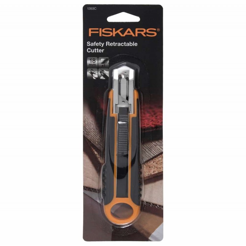 The Fiskars Professional Metal Utility Knife is engineered for durability and precision. Featuring an all-metal construction with a zinc alloy body and stainless steel components, this 18mm knife is designed for heavy-duty performance. The automatic blade locking system ensures safe and secure use, while the streamlined body delivers a comfortable and controlled grip. Ideal for cutting tough materials like paper, laminated surfaces, cardboard, and light leather. Replacement blades available separately (F1392).