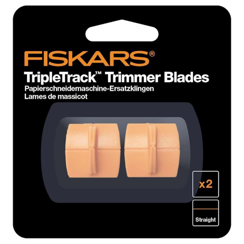 Keep your paper crafting projects sharp and clean with Fiskars TripleTrack™ Straight Cutting Trimmer Blades. Designed for personal paper trimmers, these high-profile blades ensure a better grip and handling for precise, straight cuts. The unique TripleTrack™ rail design aligns the blade and rail for straighter, more accurate results. Ideal for replacing worn blades to maintain optimal performance.
