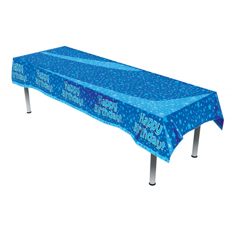 Oaktree Happy Birthday Blue Colourfast Plastic Table Cover – 137cm x 2.6m (102" x 54")