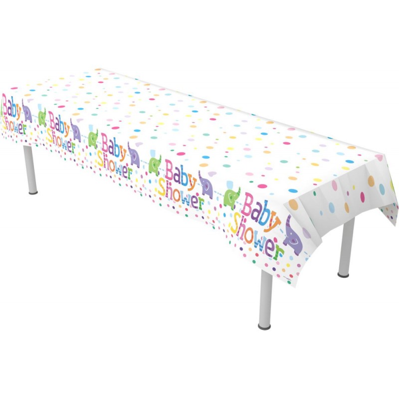 Measuring 137cm x 2.6m (102" x 54"), this colourfast plastic table cover ensures the design stays vibrant without fading. It’s also designed for easy cleanup with its wipe-clean surface, making it ideal for baby showers and other events.