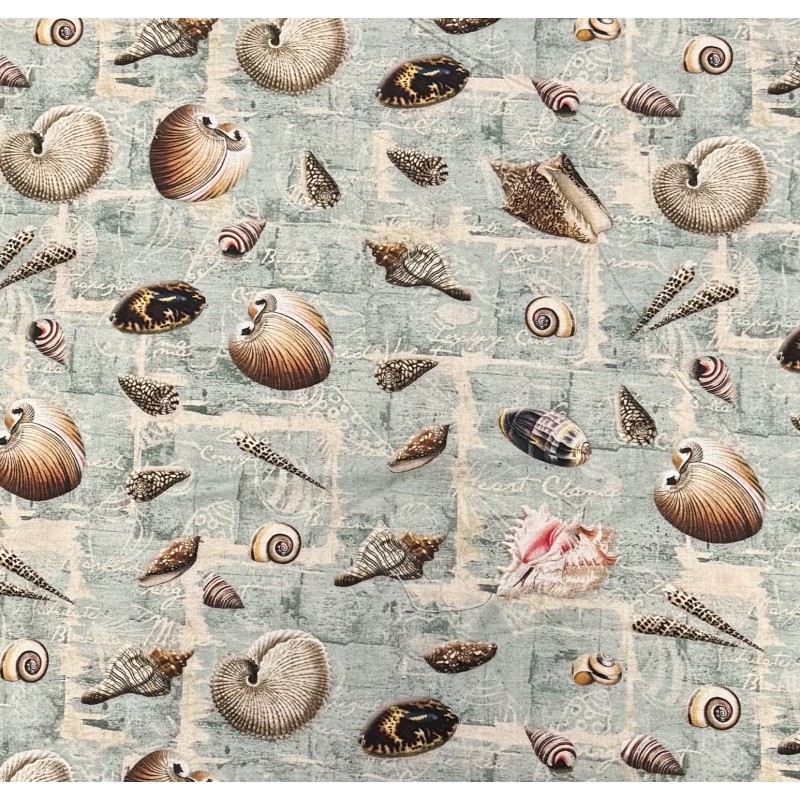 • Coastal sea shell themed cotton fabric