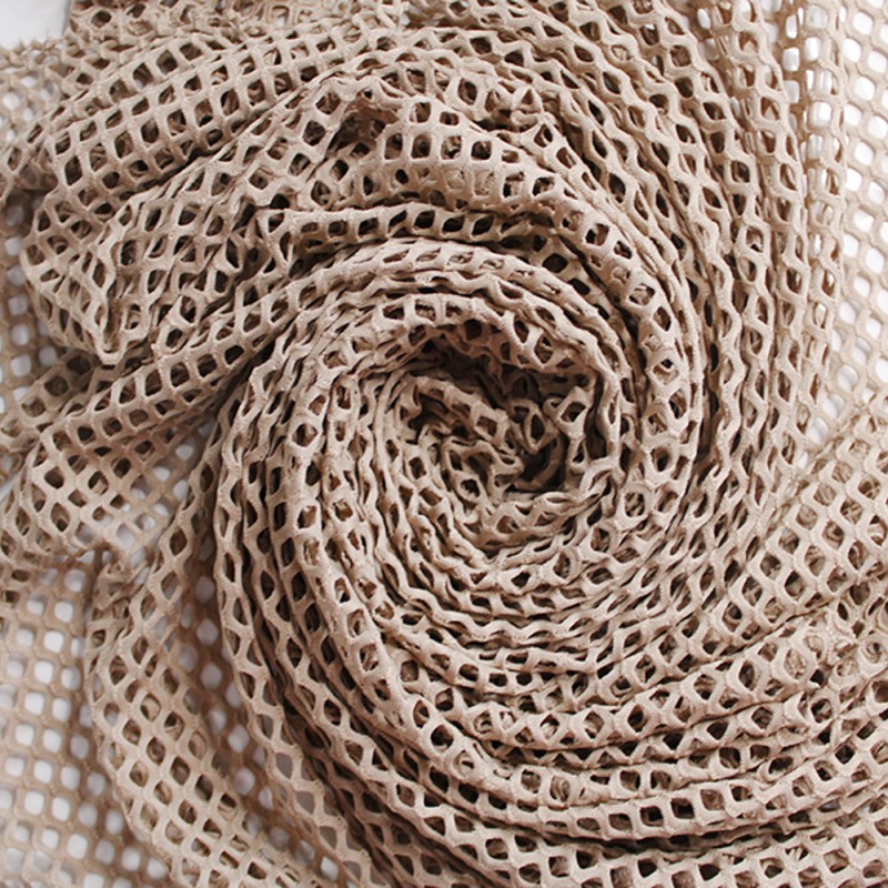 This Chunky Fish Net Lace Dress Fabric is a bold and stylish material featuring a large-scale open diamond-shaped knit, perfect for breathable and lightweight designs. The term 'fishnet' dates back to the 1880s, referring to loosely woven, open fabrics known for their flexibility and fashion-forward appeal.