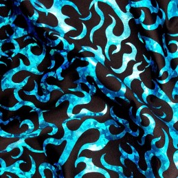 Turn heads on stage with the Sabre Holo – Nylon Spandex! 🔥 This high-stretch, synthetic fabric features an intense holographic foil pattern on a black spandex base, creating maximum contrast and striking visual impact. Available in Red or Turquoise, the jagged, flame-like design shimmers with a faceted, gem-like texture, adding depth and dimension to any outfit.