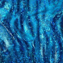 Designed for maximum impact, this lightweight yet durable fabric is perfect for dancewear, performance costumes, gymnastics outfits, and stagewear. The holographic snake-skin effect adds a fierce, high-energy look, making it a favourite for bold designs. Available in Royal, Lime, and Turquoise.