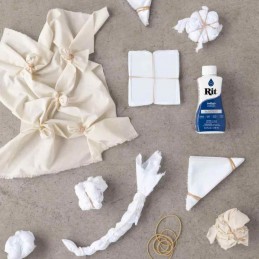 Includes all shibori supplies: rubber bands, twine, fabric squares, and gloves