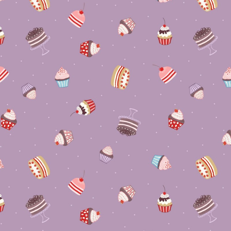 (REMNANT) 100% Cotton Fabric Lewis & Irene Sweet Things Cakes Warm Thistle Approx 45cm x 112cm