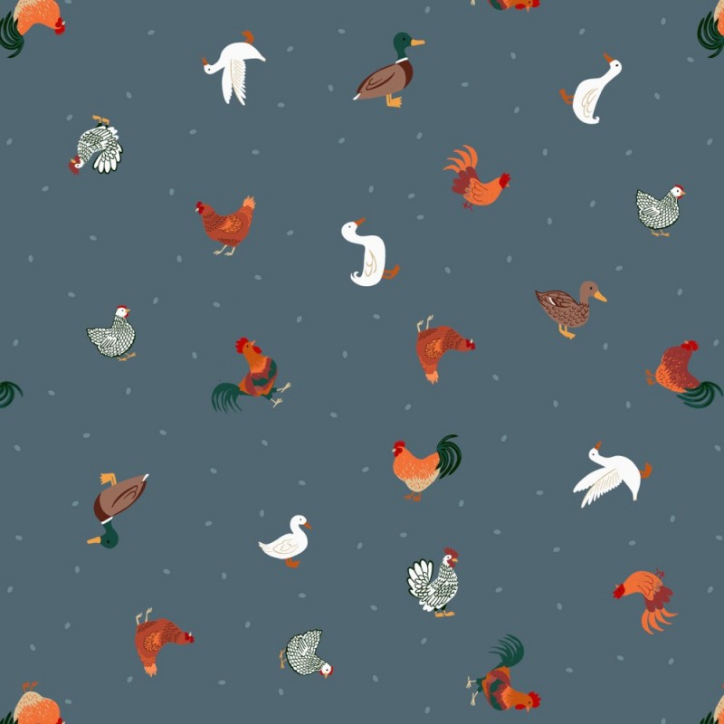 (REMNANT) 100% Cotton Fabric Lewis & Irene Chickens & Ducks Country Blue Approx 34cm x 112cm