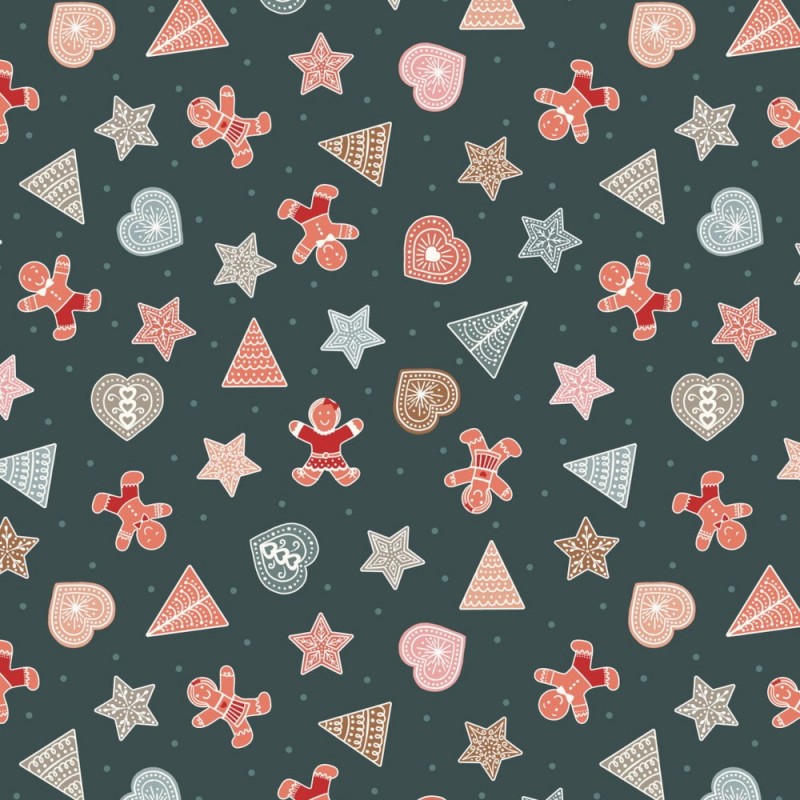 (REMNANT) 100% Cotton Fabric Lewis & Irene Gingerbread Season Shapes Dark Approx 47cm x 112cm