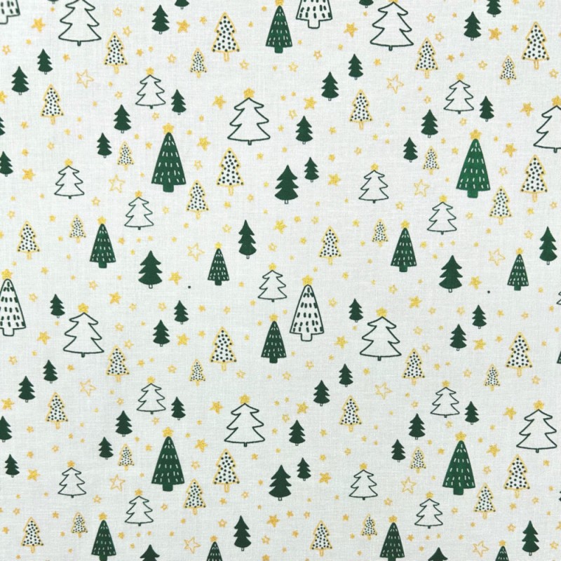 (REMNANT) 100% Cotton Evergreen Forest Christmas Trees Stars Approx 56cm x 148cm