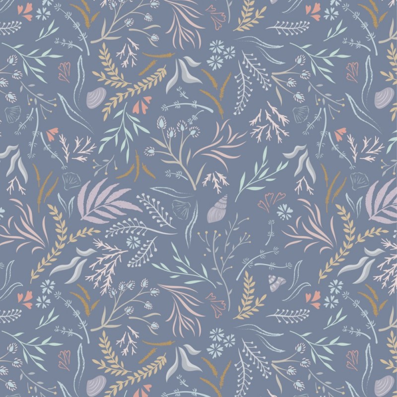 (REMNANT) 100% Cotton Fabric Lewis & Irene Seaweed Sway Porpoise Purple Approx 17cm x 112cm