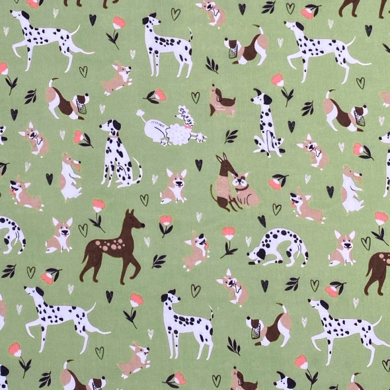 (REMNANT) Polycotton Fabric Dogs Daisies Daisy Dog Doggy Puppy Animals Floral Approx 47cm x 112cm