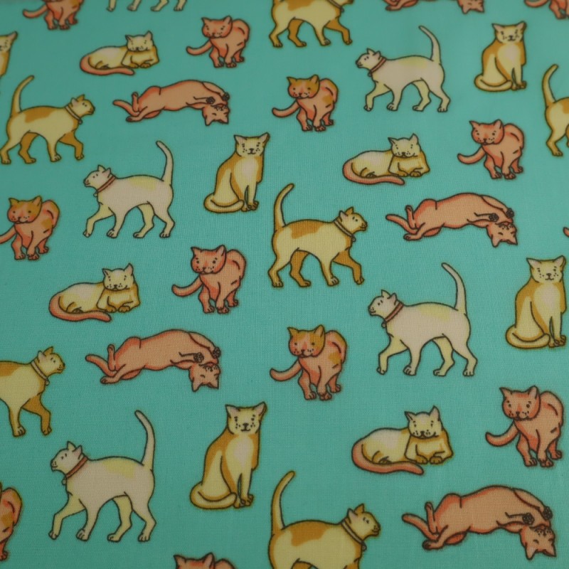 (REMNANT) Polycotton Fabric Just Cats Kitties Lounging Animals Approx 45cm x 112cm