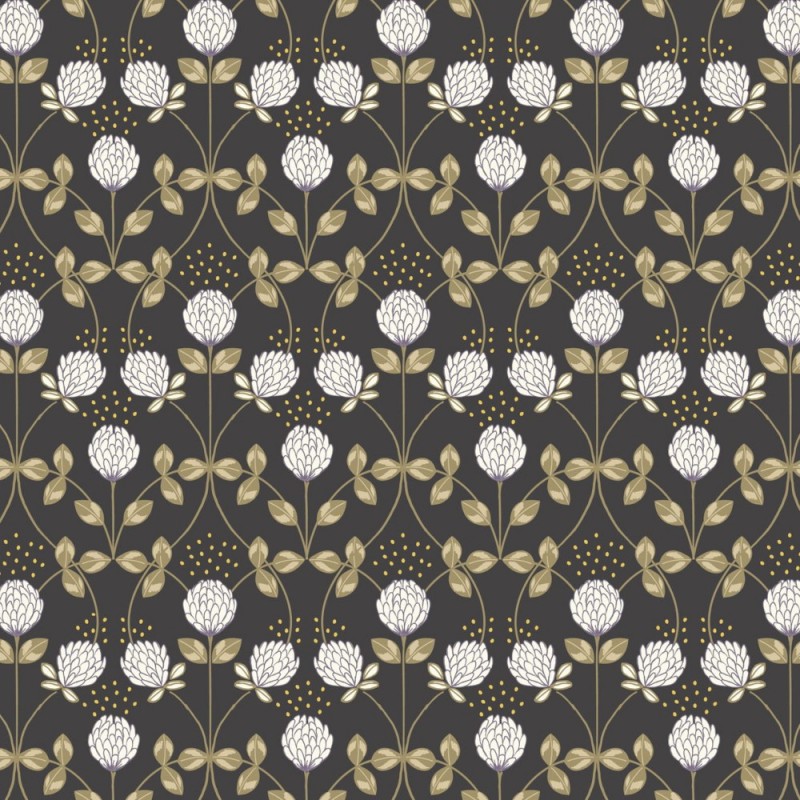 (REMNANT) 100% Cotton Fabric Lewis & Irene Clover Floral Metallic Charcoal Approx 14cm x 112cm