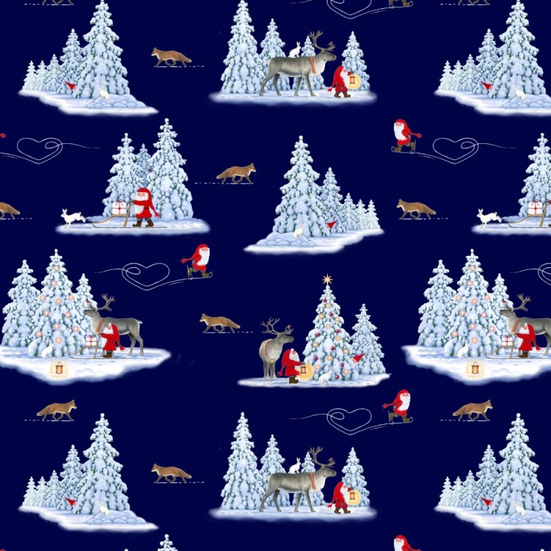(REMNANT) 100% Cotton Fabric Lewis & Irene Forest Friends Foxes Dark Navy Approx 36cm x 112cm