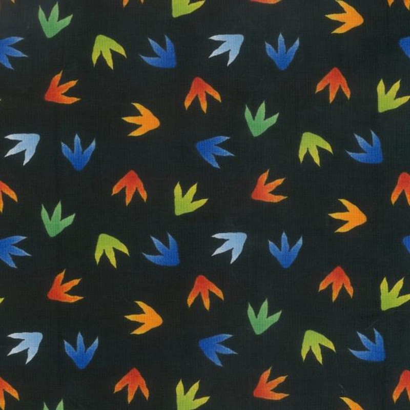(REMNANT) 100% Cotton Fabric Jurassic Colourful Dinosaur Footprints Approx 54cm x 55cm
