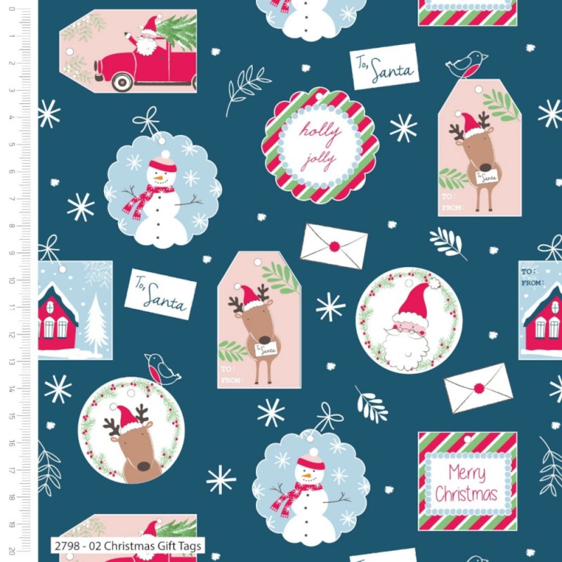 (REMNANT) 100% Cotton Fabric Timeless Treasures Christmas Gift Tags Approx 58cm x 54cm