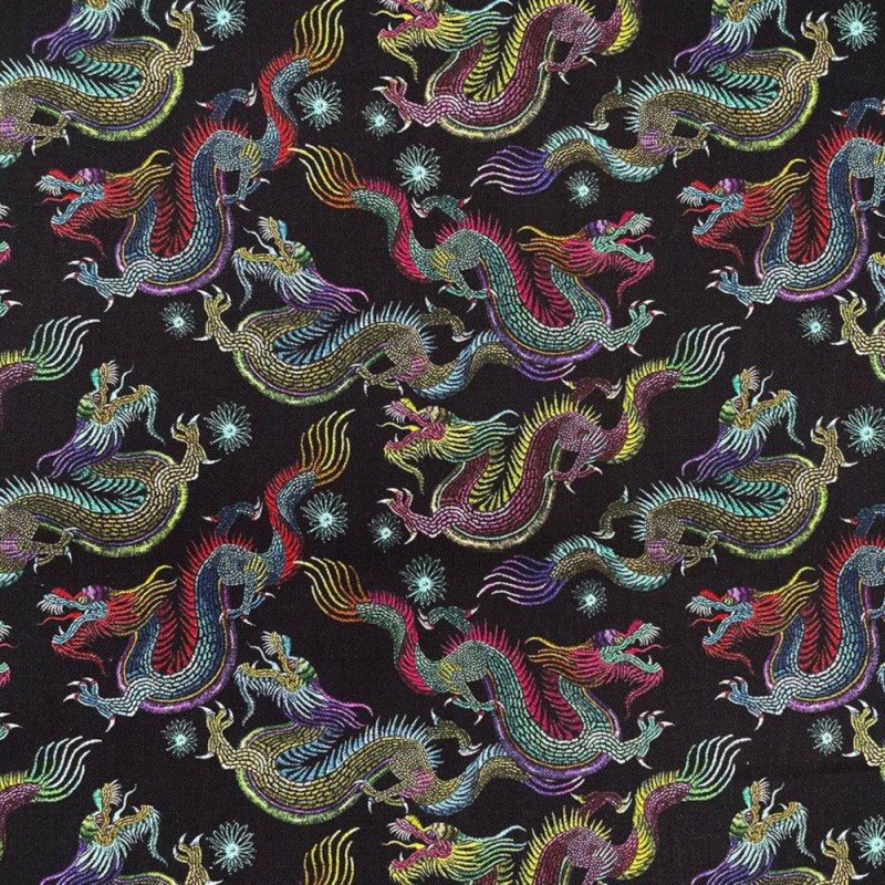 (REMNANT) 100% Cotton Poplin Fabric Chinese Dragons Multicoloured Approx 49cm x 134cm