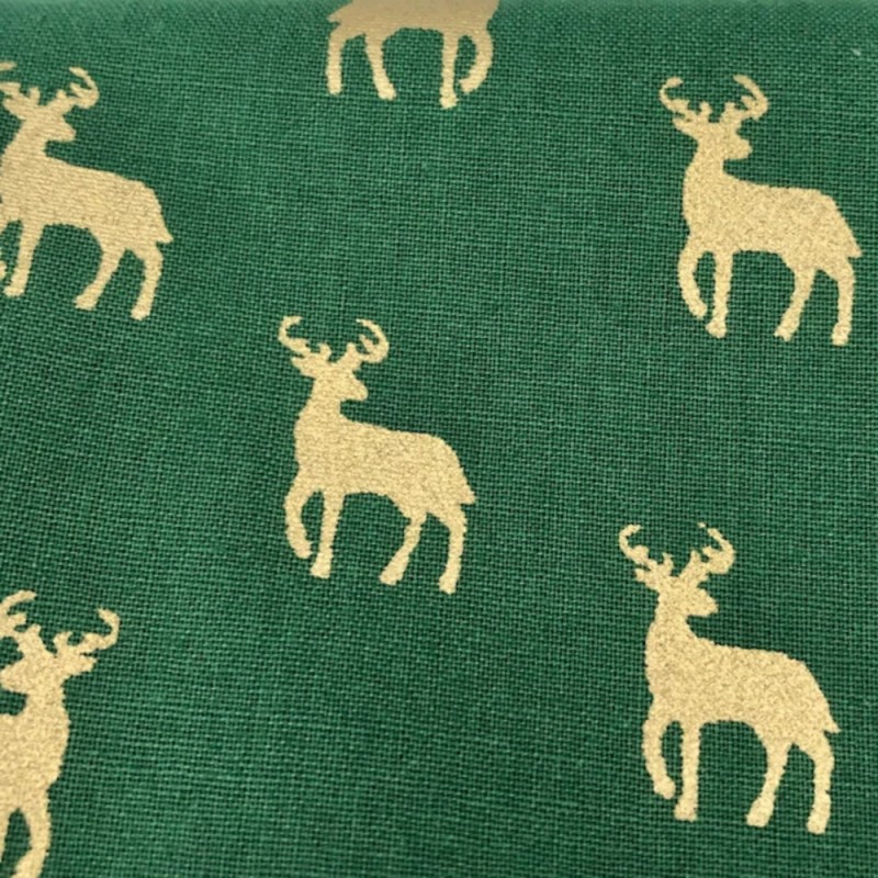 (REMNANT) 100% Cotton Metallic Fabric John Louden Gold Deer Scandi Print Approx 200cm x 112cm