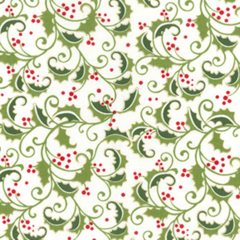 (REMNANT) 100% Cotton Fabric Christmas Holly Leaves Scrolling Vine Berries White Approx 37cm x 112cm