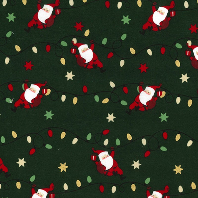 (REMNANT) 100% Cotton Fabric Rose & Hubble Christmas Santa Swinging Light Bulbs Approx 55cm x 68cm