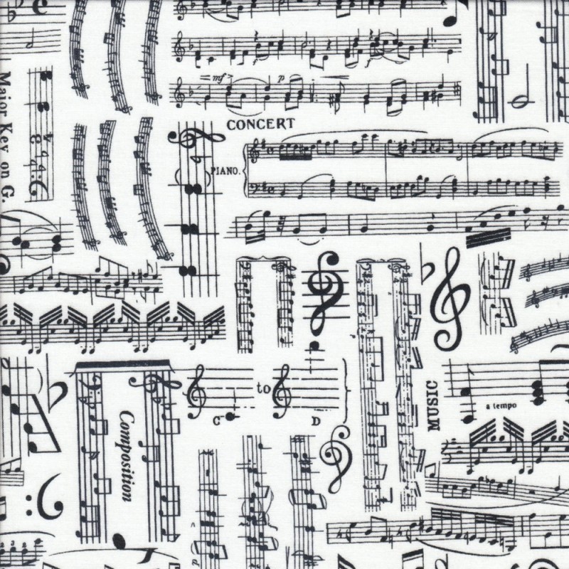 (REMNANT) 100% Cotton Fabric Musical Notes Concert Instruments Music Approx 30cm x 112cm