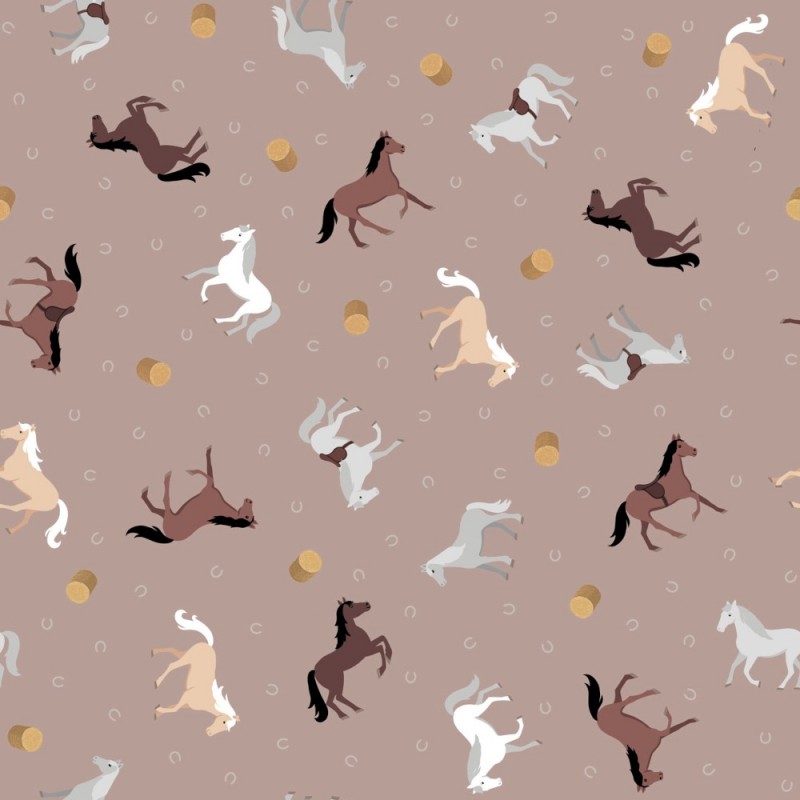 (REMNANT) 100% Cotton Fabric Lewis & Irene Countryside Horses Latte Approx 17cm x 112cm