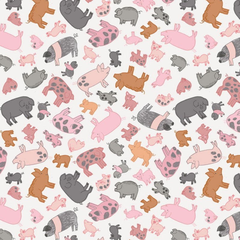 (REMNANT) 100% Cotton Fabric Lewis & Irene Piggy Tales Pigs Farm Cream Approx 29cm x 112cm